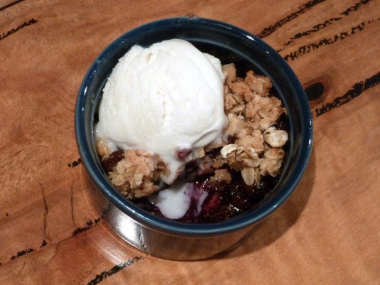 Bake 15-20 minutes or until top is browned and blueberries are ‘bubbling’.