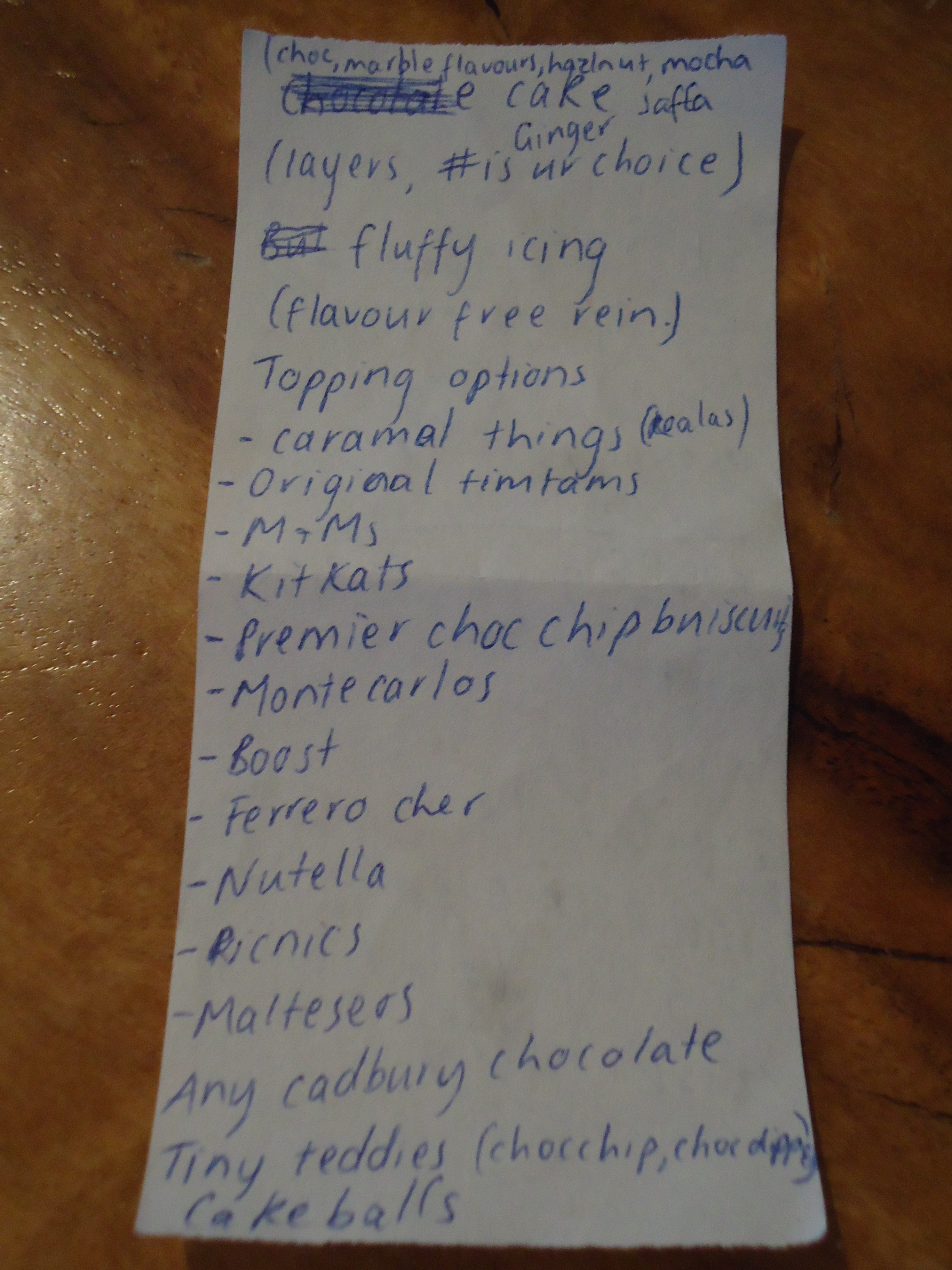 Boy has the lead up to my sisters 18th birthday been an ordeal and a half. A high stress exercise. Not to mention time consuming. You would think that with it being at the forefront of conversation I would have had her present and card lined up weeks ago. Yet, in light of everything else, that small matter has somehow slipped my mind. Oops. Looks like I’ll be making a late-night dash out to the shopping centre sometime soon. So if we haven’t been focused on presents – the logical issue – then what on earth have we been arguing about discussing? Food of course. My darling princess of a sister recently put forward her ‘birthday menu’. That’s right, not just a nice birthday dinner and cake, but a whole weeks worth of meals. She’s not asking for much is she? And, I momentarily took leave of my senses, stupidly agreeing to fulfill her wishes. I think I have a death wish. You see, my sister has high standards when it comes to food. Well, more specifically her favourite foods. They have to be prepared ‘just right’ and according to her – sometimes obscure – interpretations. But the thing is I don’t have a big problem with the menu in itself. Just one dish in particular. The prize jewel of any birthday. The cake.