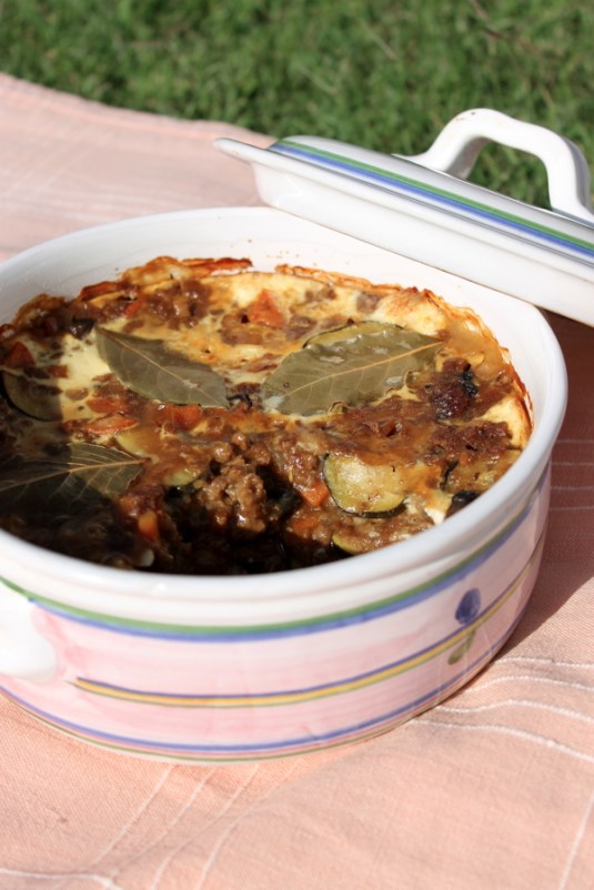 This post was scheduled to go up last Monday. Clearly my technological skills are not up to scratch! Anyway, here it is: a week late but here all the same. Bobotie. Looks revolting. Tastes fan-tiddly-astic. “Hold up a sec”, you say. What on earth is Bobotie? I’ll forgive you for asking. Unless you’re South African, or of South African descent it’s highly unlikely that you’ve come across this particular specimen. The traditional version consists of a sweet, spicy beef mince sauce, topped with an eggy layer, dotted with bay leaves. Think Sheperd’s pie on steroids. Or magic mushrooms. The ingredients list is most peculiar – chutney, jam, bread soaked in milk, lemon juice, curry powder….but it works in a most satisfying way. Have a little faith.