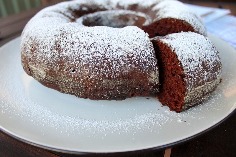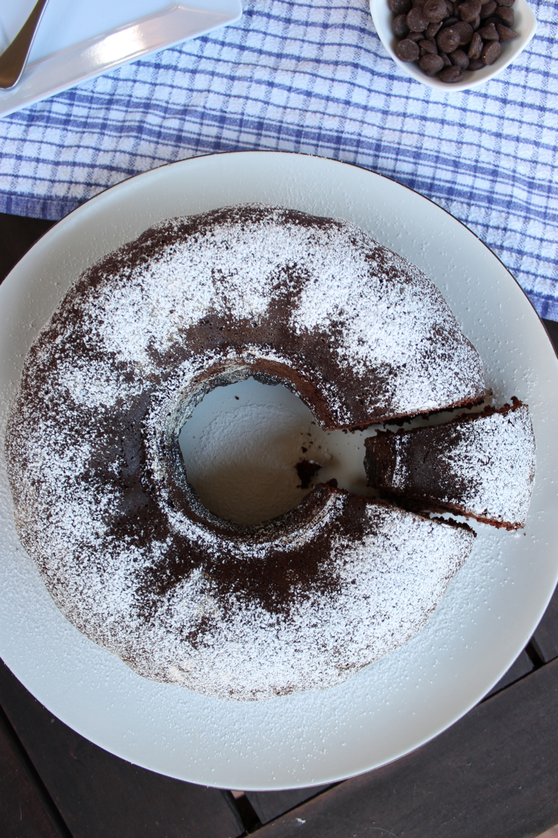 I think it would be accurate to say that I can be a twit at times. It appears that not even attending the University of Oxford prevents one suffering from the affliction of ‘donkey brain’. The baking of this Chocolate Beetroot Bundt Cake witnessed one such pea-brain episode. The sad thing is, it’s not even a hard cake to make. Practically an all-in-one. The hardest thing is preparing the bundt tin. Knowing that you’re meant to stir the chocolate chips in before the cake goes into the oven is kind of expected. Remembering that after the cake has been in the oven for five minutes is not part of the recipe. Uttering a series of expletives, pulling the cake frantically back out of the oven (my pastry teachers would have a heart attack if they witnessed that) and pushing the chocolate chips into the top of the partially risen, hot, soft batter certainly isn’t. Fortunately, this episode of Shani-is-a-bimbo wasn’t terminal. I’m pleased to announce that the cake turned out a-okay. You can’t say this Chocolate Beetroot Bundt Cake hasn’t been adequately tested for fool-proof-ness – it was tested by the fool herself.