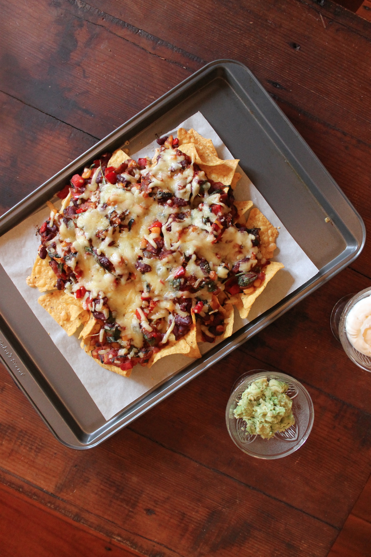 I sat down to study. Opened the lap-top. Read the first line of that journal article on Indigenous women and feminism. And the brain’s energy circuits shorted. Cue staring at the screen for a solid five minutes. Not taking a single thing in. Right. If study is out the window then surely blogging is in? Nada. This gal’s brain is currently sending out signals along the lines of bleuaighleighmmmmnop. And intermittently at that. It’s struggle town. Tonight’s post is going to be short and sweet, me thinks. This situation calls for a recipe that is beyond simple. Virtually impossible to make a boo-boo out of. Tasty, regardless of how terribly you maul it in your zombie-brain state. Look no further than Vegetarian Nachos. Boo-yah.