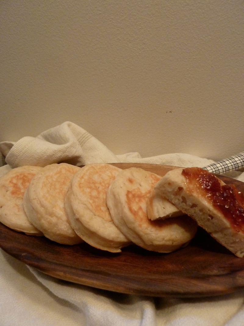 Maybe I’m hardwired to be hyperactive, but even if it’s on doctors orders I feel guilty reading/watching a film/being a couch potato when I know that there are other things that are calling out to be done. Like assignments, uni applications and going for a run. Yup I actually find it ridiculously hard to be lazy. There, I said it. Weird, but true. Thankfully I’ve reached some sort of compromise. Baking. Nothing strenuous of course! It allows for productivity on some level (though admittedly we don’t need the extra food, the freezer and cookie tin are already full to bursting) without in the doctors terms, ‘overexerting’. Any-who comfort food is always a good thing when you’re feel as though you’ve got your head up a dead bears bum. Like crumpets. They take me back to wintery Saturday mornings as a gawky pre-teen spent curled up by the fire with a book and a hot crumpet, just oozing with jamminess. Home-made of course. Perhaps making a batch of these will nudge me in the right direction of resting. If not, at least we have crumpets!